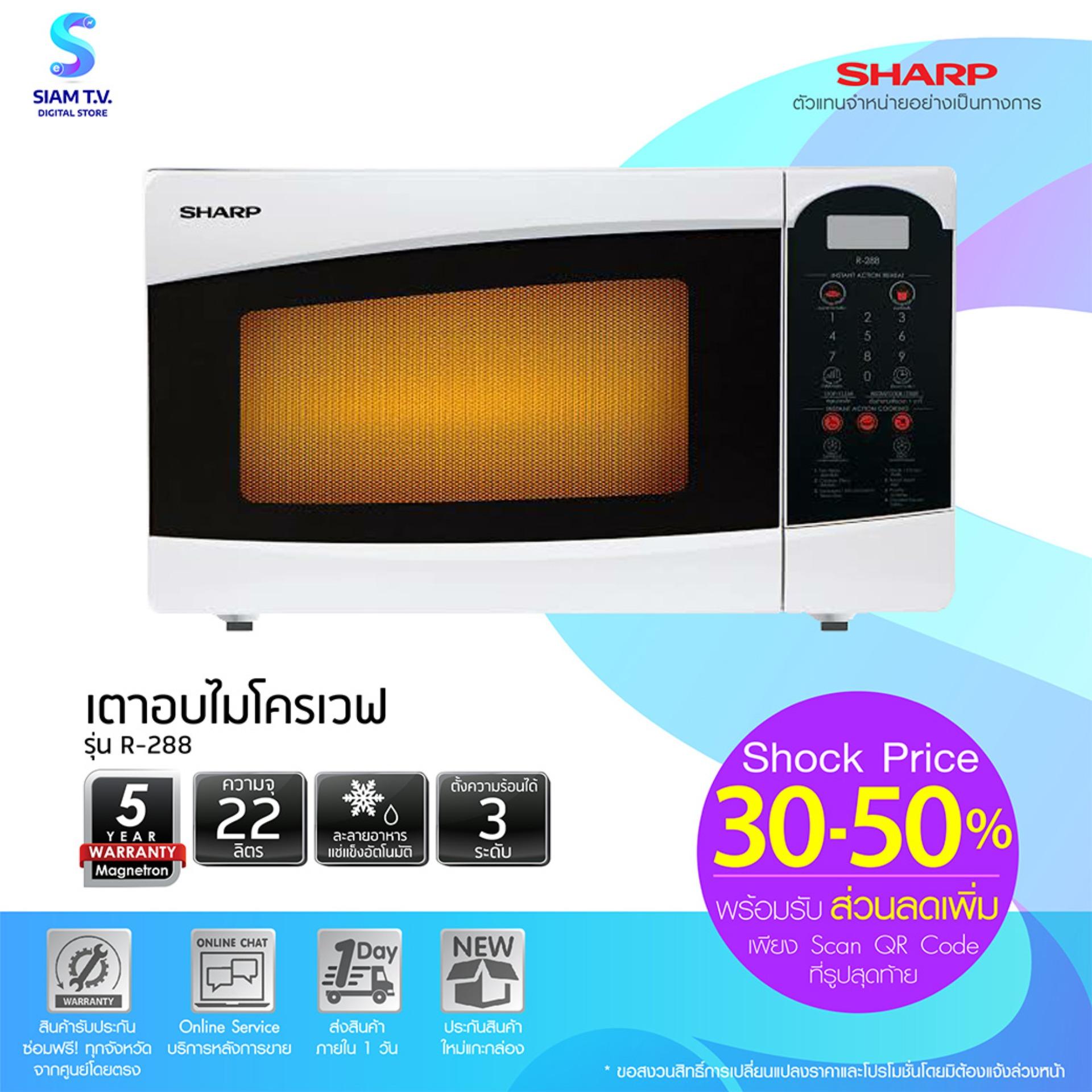 SHARP ไมโครเวฟ (800 วัตต์,22 ลิตร) รุ่น R-288 ราคาถูกและพิเศษ อาจจะมีเวลาที่จำกัด ก่อนที่ท่านจะซื้อ SHARP ไมโครเวฟ (800 วัตต์,22 ลิตร) รุ่น R-288 อย่าลืมเช็ค สถานะของสินค้าก่อนว่ายังมีสินค้าอยู่ในสต๊อคหรือไม่ ด้วยการบริการที่ดีเยี่ยมของเราและความหลากหลายบริการการจัดส่งให้คุณเลือกได้ตามสะดวก และรีบรับข้อเสนอสุดพิเศษ จากทางเราก่อนที่สินค้าจะหมด
